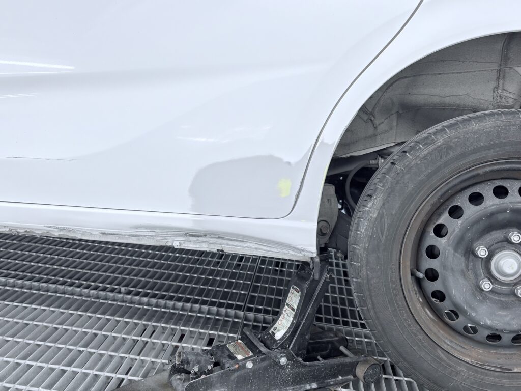 今回、修理のご依頼を頂きましたお車は多少の傷はきにしないアウトドア派のオーナー様ですが、、、サイドステップ下からがっつりやっちゃって錆とかは防ぎたくて、、、と御入庫頂いたのはフリードです😢!!